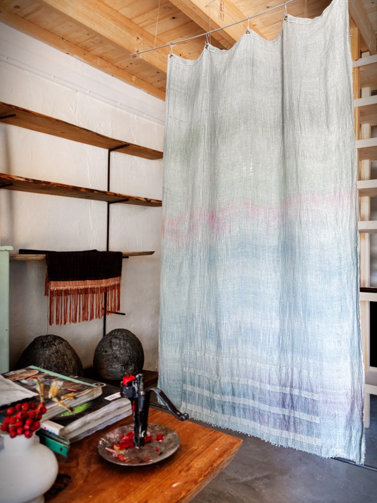 Rutig Dubbelväv – Hålkrus och tuskaft färgeffekt, material Lin och bomull