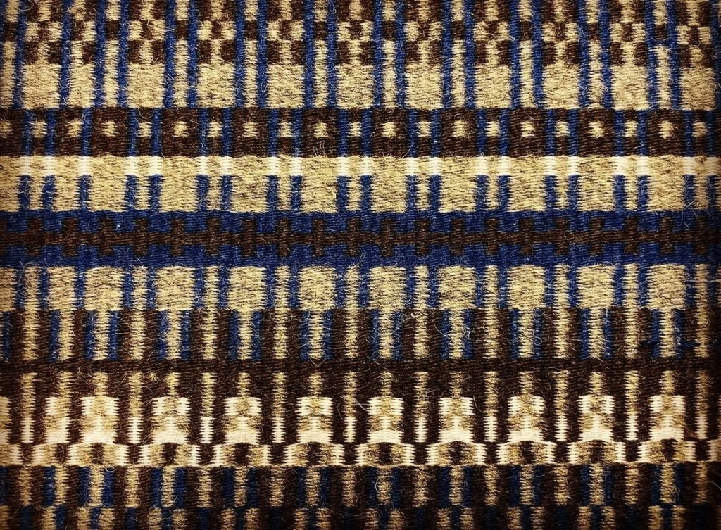 Handwoven woolen textile with Flax Warp. Photo by Anne Laure Camillier